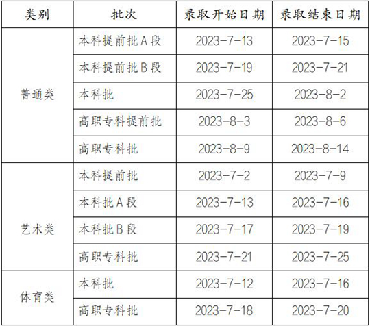 我市2023年普通高校招生錄取工作即將全面正式開始,將于8月14日結束,各類別各批次錄取進程安排如下。