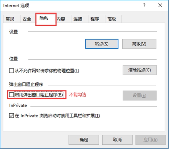 方法二:打開IE瀏覽器,點擊“設置”-“Internet(選項)”-“隱私”,如下圖: