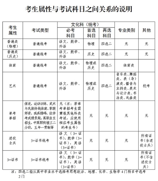 答:考生屬性與考試科目之間的關系說明詳見下表: