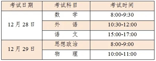 本學期開考科目為語文、數學、外語、物理、思想政治5個科目。具體考試時間及科目安排如下: