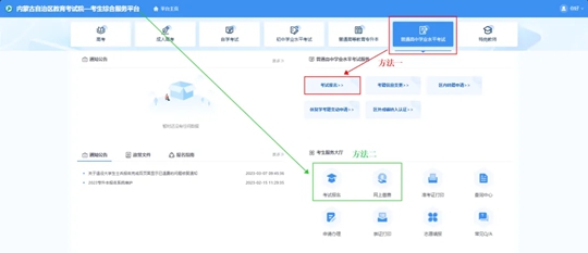 符合報考條件的考生須在規定時間內登錄內蒙古招生考試信息網“內蒙古自治區普通高中學業水平考試考籍管理和選課報名系統”,選擇“考試報名”和“網上繳費”,進行選課報名并繳費。