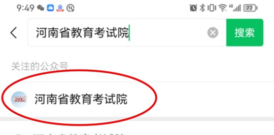 2、微信搜索“河南省教育考試院”微信公眾號并關注。
