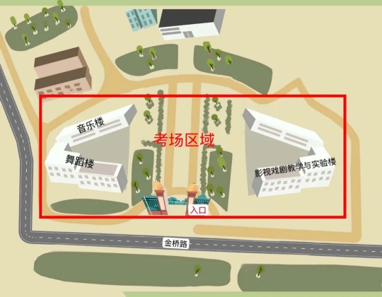 ▲新疆藝術學院(金橋校區)考點示意圖請舞蹈類、表(導)演類、播音與主持類考生從新疆藝術學院正門進入