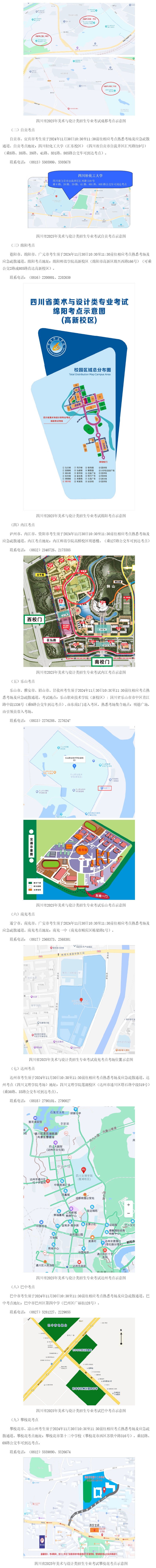 成都市、阿壩州考生須于2024年11月30日10:30至11:30前往相應考點熟悉考場及應急疏散通道。成都考點第一考區:四川師范大學附屬實驗學校(成都市錦江區靜安路5號)。成都考點第二考區:成都市錦江區師一學校(成都市錦江區靜安路288號),以上兩個考區乘地鐵7號線,公交51路、56路、56a路、138路、186路、332路、332a路、336路、343路等均可到達。成都考點第三考區:成都市龍泉驛區師上高級中學校(成都市龍泉驛區大面街道惠王陵東路109號),該考區乘地鐵2號線(惠王陵地鐵站A出口步行1.9公里),公交855路、856路、336路、854路均可到達。