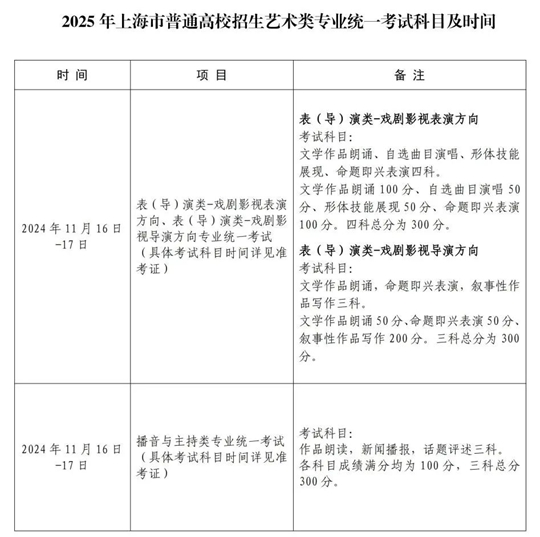 2025年上海市普通高校招生藝術(shù)類專業(yè)統(tǒng)一考試科目及時(shí)間