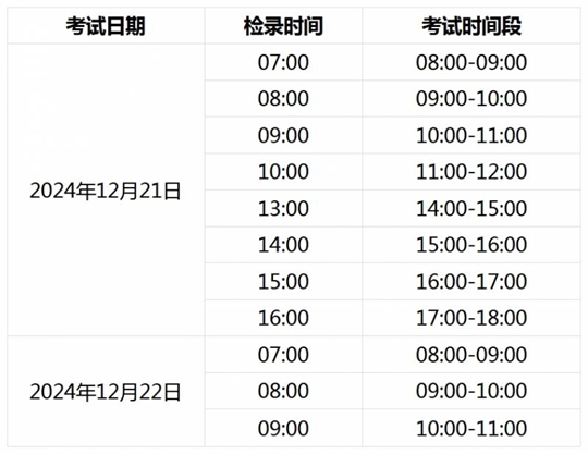 考生可根據自己的時間安排,于2024年12月11日8:00至12月12日18:00登錄甘肅省教育考試院網站(https://www.ganseea.cn)綜合管理平臺(https://kw.ganseea.cn)“考生入口端”預約考試時間,時間截止后未預約的考生,將由系統隨機安排考試時間。考生于2024年12月16日8:00起登錄系統打印《準考證》。考試自2024年12月21日8:00開始,考生根據《準考證》公布信息按規定參加考試。