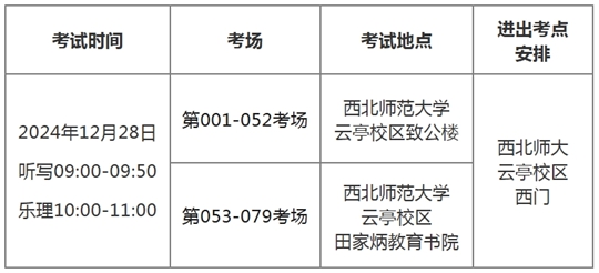 筆試考點設在西北師范大學云亭校區(地址:蘭州市安寧區安寧東路967號);