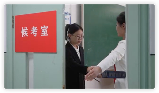4、考生持《檢錄單》前往更衣室更換衣物后進入候考室等待,進入候考室前需再一次進行安檢。