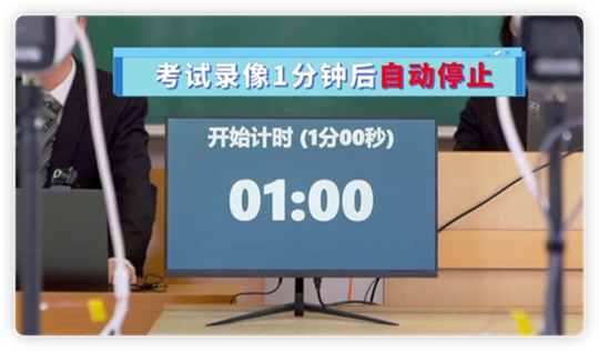 注意:新聞播報考試時間為1分鐘,若超出時間未完成者,考試錄像自動停止,系統將自動結束當前科目考試。