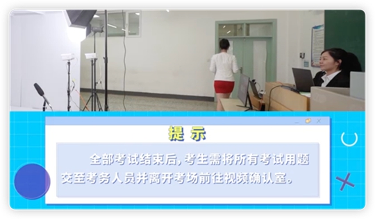 (3)考生話題評述考試結束后,考生須將所有考試用題交至考場考試工作人員。由引導員引領到視頻確認室。