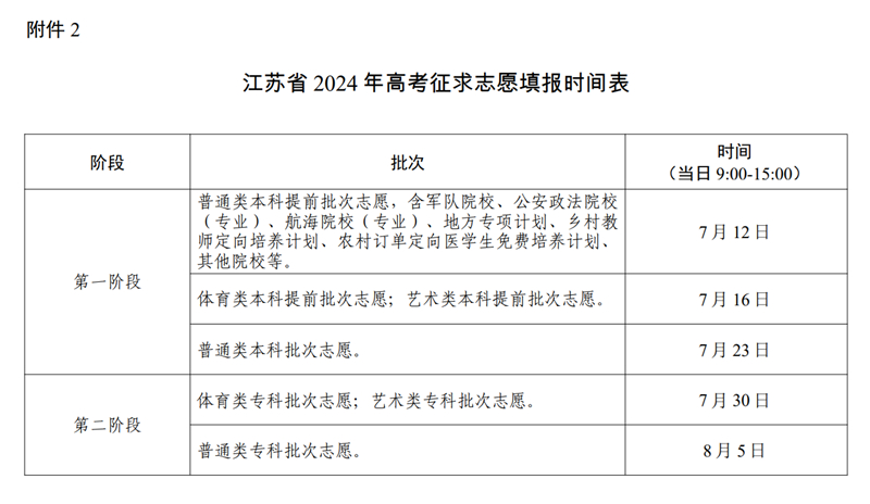 江蘇省2024年高考征求志愿填報(bào)時(shí)間表