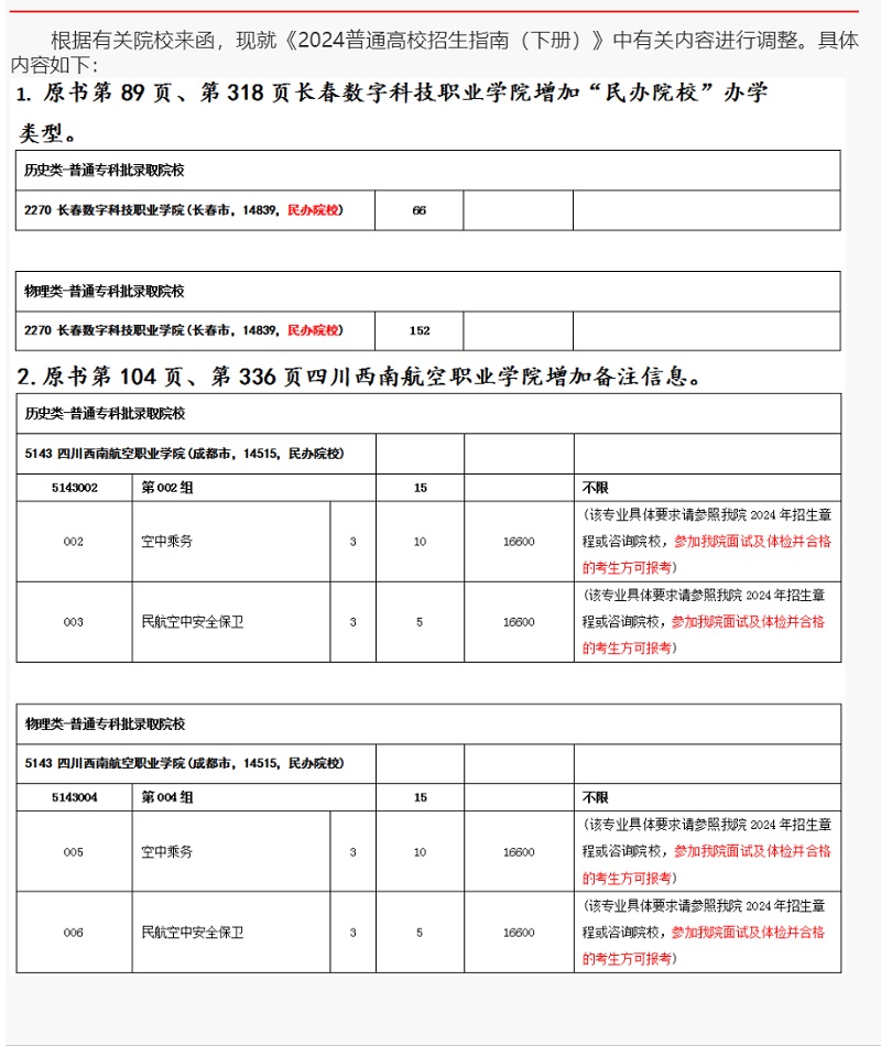 2024普通高校在吉林省招生計劃調整公告(第2號)