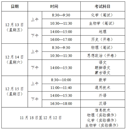 2024年下半年吉林省普通高中學業(yè)水平合格性考試日程表