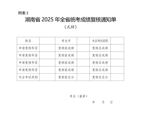 2.湖南省2025年全省統考成績復核通知單(式樣)