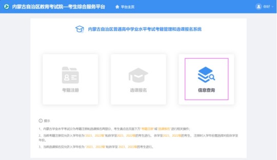 內蒙古自治區普通高中學業水平考試考籍管理和選課報名系統點擊查看