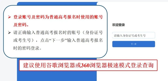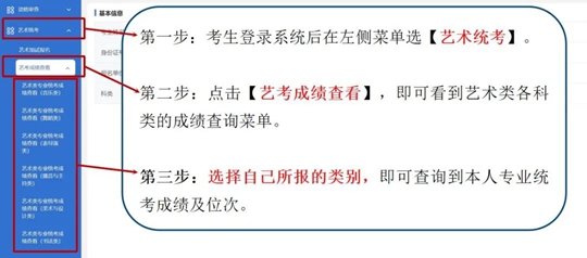 屆時,考生可登錄新疆教育考試院官方網(wǎng)站(www.xjzk.gov.cn,下同),在“公眾服務大廳”欄目中點擊“成績查詢”,進入“新疆普通高考藝術類專業(yè)統(tǒng)一考試成績查詢”系統(tǒng),正確輸入普通高考報名時的賬號(身份證號或考生號),點擊“下一步”輸入普通高考報名時的密碼登錄,查詢本人專業(yè)統(tǒng)考成績及位次(登錄、查詢流程詳見圖片),并自行打印成績單。