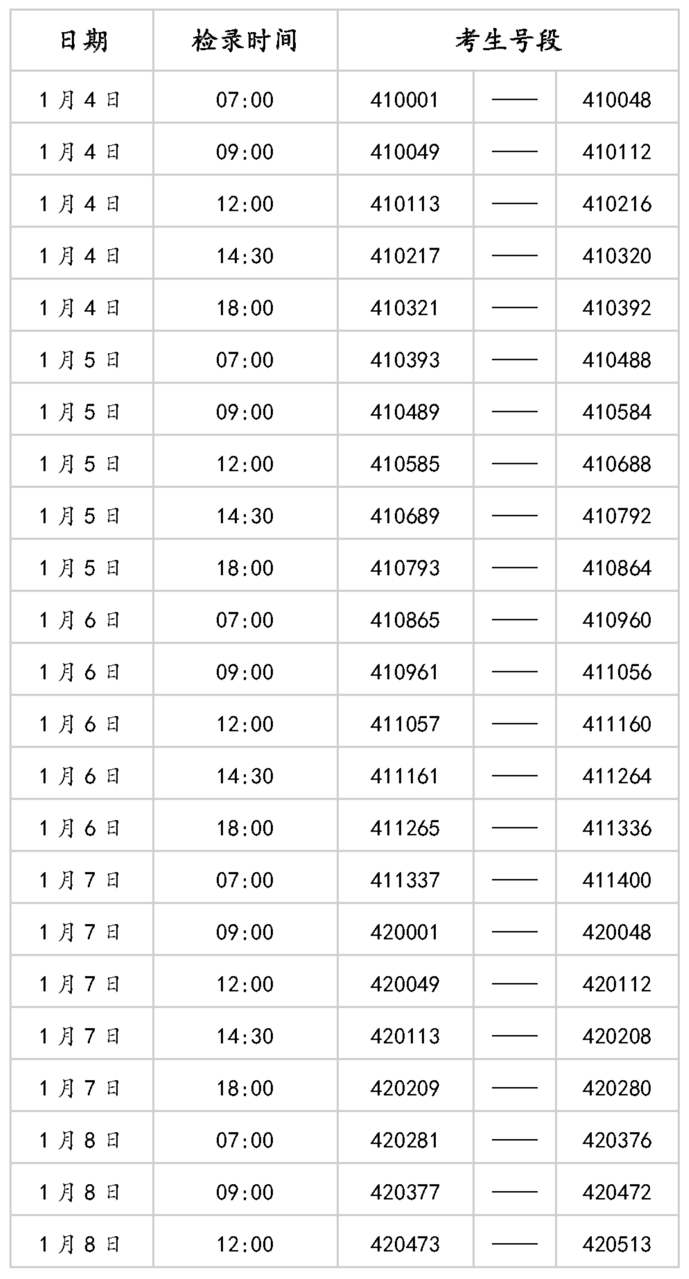 1.檢錄:考生進入考點(考試封閉區域)前,提前存放好手機等考試違禁物品,并主動接受工作人員的身份驗證和隨身物品檢查?忌鷻z錄時計算機系統隨機分配考場及考試順序號,簽字確認后,由考試工作人員指引進入候考區域等候。