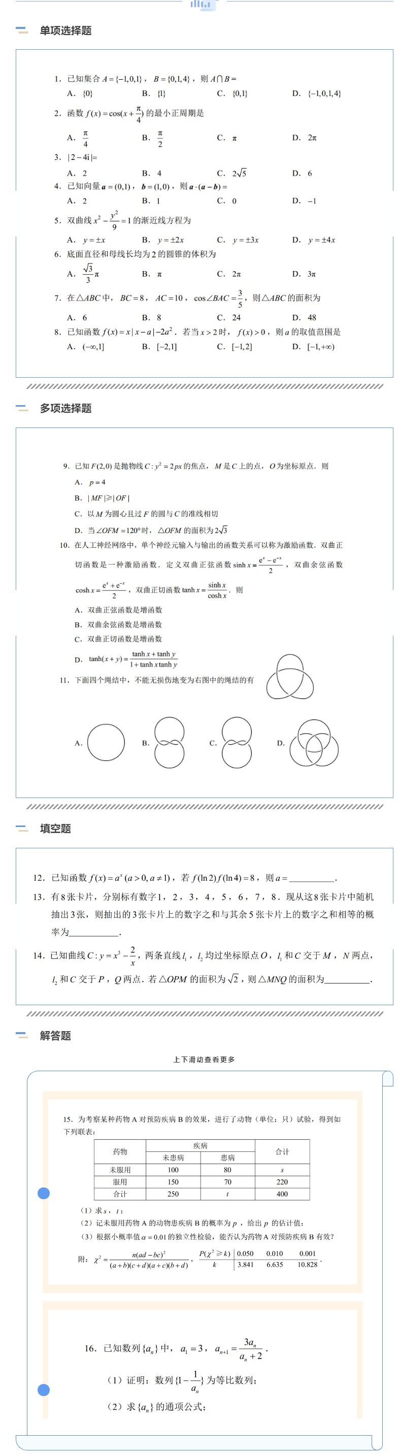 編者按:2025年,山西、河南、陜西、內(nèi)蒙古、四川、云南、寧夏、青海等第五批高考綜合改革省、自治區(qū)將要首考落地,為實(shí)現(xiàn)平穩(wěn)過渡,相關(guān)省區(qū)組織了適應(yīng)性演練。數(shù)學(xué)科適應(yīng)性測(cè)試題由教育部教育考試院命制,可供依據(jù)《普通高中數(shù)學(xué)課程標(biāo)準(zhǔn)(2017年版2020年修訂)》教學(xué)、使用高考全國卷的省區(qū)市參考借鑒。