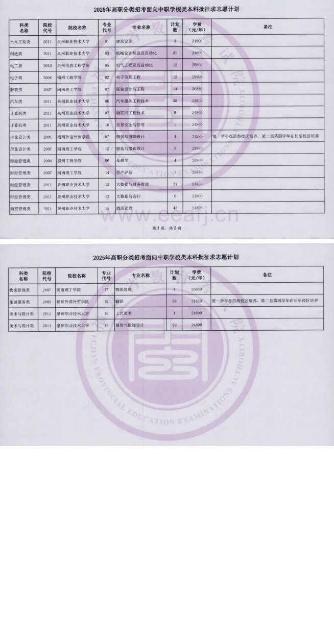 2025年福建省高職分類招考面向中職學校類本科批征求志愿通告 |