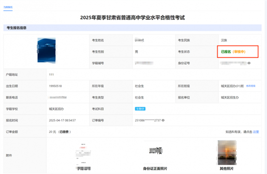 待縣(市、區)教育考試招生機構資格審核通過后,報名完成。考生狀態:已報名(審核通過)