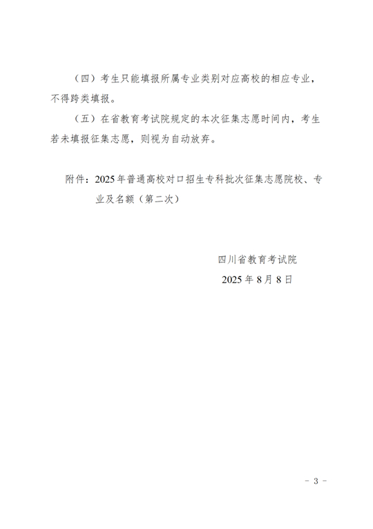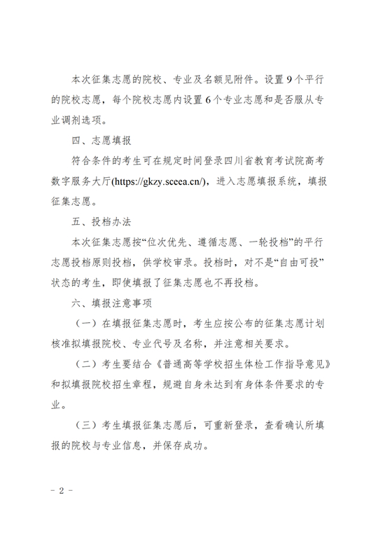 四川:關于普通高校對口招生專科批次第二次征集志愿的通知