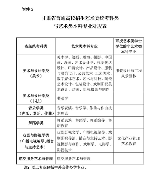 2.2021年甘肅省普通高校招生藝術(shù)類專業(yè)統(tǒng)考科類與藝術(shù)類本科專業(yè)對(duì)應(yīng)表
