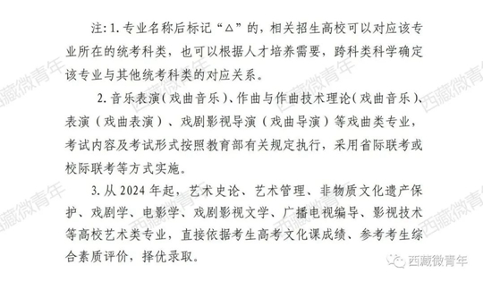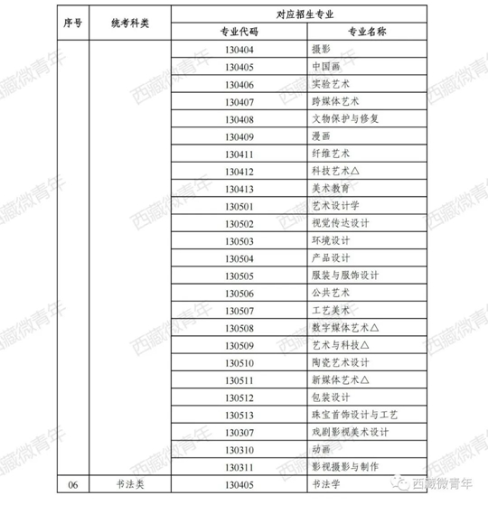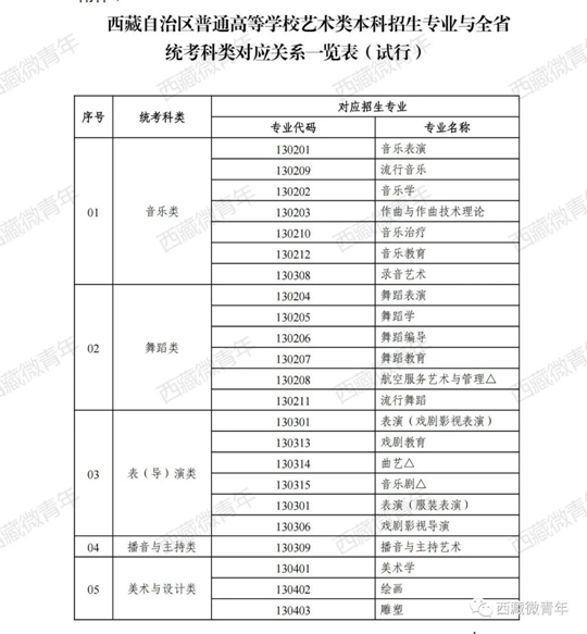 西藏自治區普通高等學校藝術類本科招生專業與全省統考科類對應關系一覽表(試行)