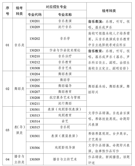 3.高職(專科)院校藝術類專業與統考科類對應關系參照本科專業的對應關系執行。