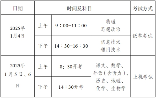 我市2024-2025學年度第一學期普通高中學業水平合格性考試將于2025年1月4日-6日進行,現將有關事項公告如下: