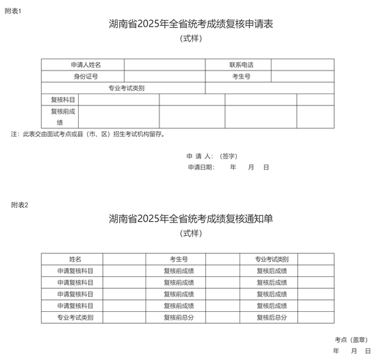 附表:1.湖南省2025年全省統考成績復核申請表