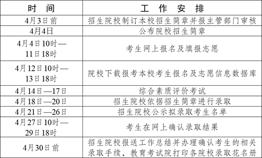 考試(綜合素質評價)以面試為主,時間為4月14日至17日,具體考試時間及方式以報考院校通知為準。