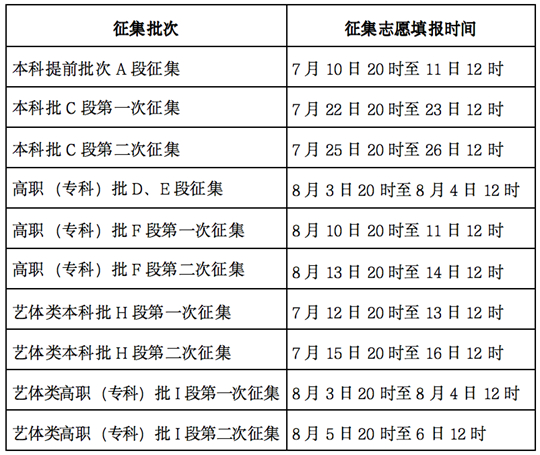 除本科批(B段)、藝體類本科提前批(G段)等兩個批次不實行征集志愿外,其他批(段)次均實施征集志愿。