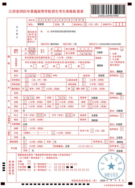 凡報名參加2025年普通高等學校招生的各類考生均須參加高考體檢,包括參加普通高等學校招生統一考試的考生,報考強基計劃、少年班、高校專項、高水平運動隊、物理攀登計劃(清華大學)、數學英才班(北京大學、清華大學)等考生;參加高校免試錄取的保送生、數學領軍計劃(清華大學)、物理卓越計劃(北京大學)等考生;參加全省高職院校單獨招生考試的考生(含免試錄取的技能大賽獲獎考生);參加全省三校生類招生考試的考生;參加部分高校殘障考生單招、職教師資單招的考生;報考運動訓練、武術與民族傳統體育專業招生等考生。