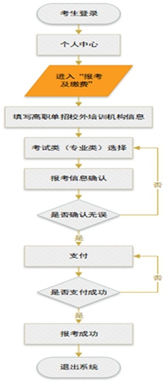 5.考生可選擇微信或支付寶,掃描二維碼進(jìn)行繳費(fèi)。繳費(fèi)成功后,報考狀態(tài)會顯示“報考成功”,考生可點擊“完成報考”按鈕返回個人中心,再次查看報考信息,核查無誤后可點擊頁面右上方的“退出系統(tǒng)”安全退出系統(tǒng)。具體報考流程如下: