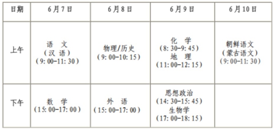 15.我省統(tǒng)一高考于6月7日開始舉行,具體科目考試時間安排如下: