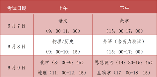 第十二條 全國統(tǒng)考和普通高中學(xué)業(yè)水平選擇性考試于6月7日至9日舉行,具體科目考試時(shí)間安排為: