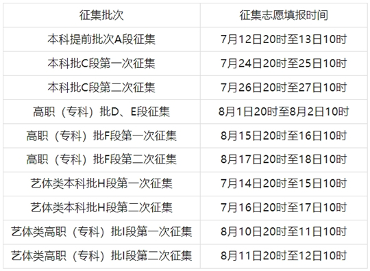 填報批次為:本科提前批(A段),本科批(B段、C段),高職(?疲┨崆芭―段、E段),藝體類本科提前批(G段),藝體類本科批(H段)。