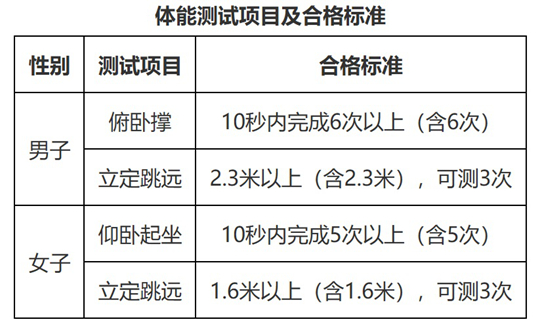 高考成績達到普通類本科批次控制分數線,并填報中央司法警官學院志愿的考生,均可參加由陜西省監獄管理局組織的體能測試、體檢和面試。