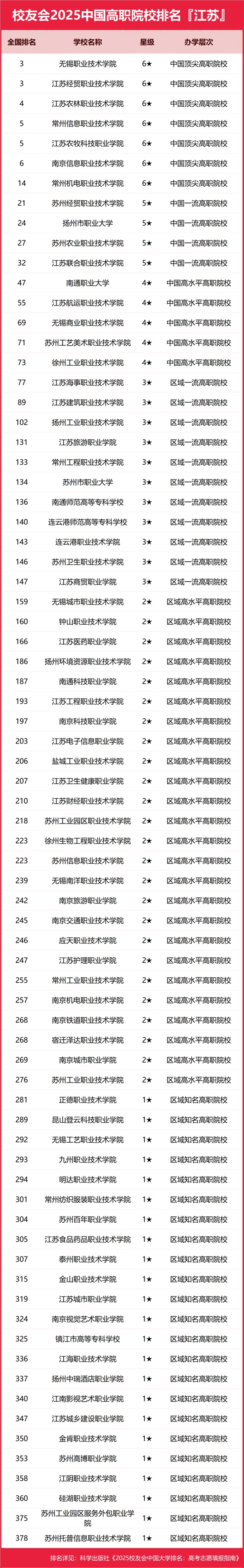 校友會2025江蘇省高職院校排名,無錫職業技術學院、江蘇經貿職業技術學院并列第一