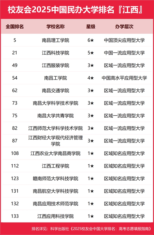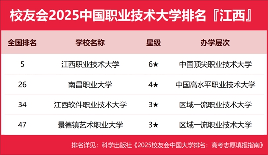 校友會2025江西省大學排名,南昌大學、南昌理工學院、江西應用技術職業學院、江西職業技術大學第一 |