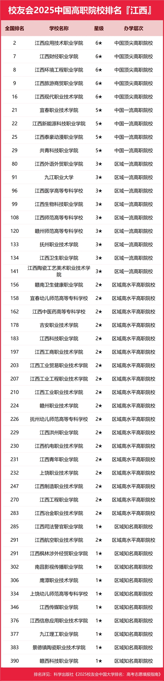 校友會2025江西省高職院校排名,江西應用技術職業學院第一,江西新能源科技職業學院前十