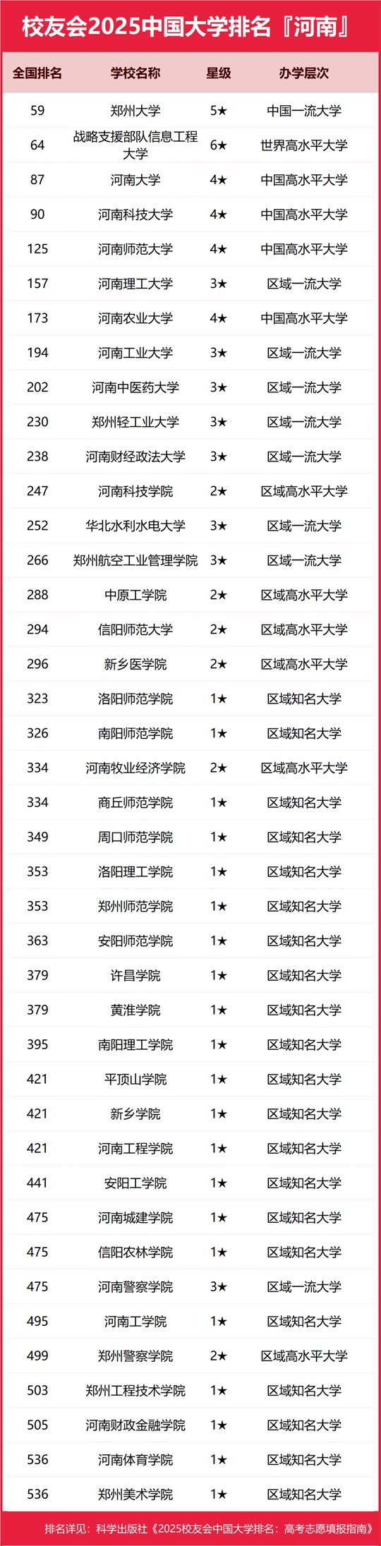 校友會2025河南省大學排名,鄭州大學、商丘學院、河南科技職業大學第一 |