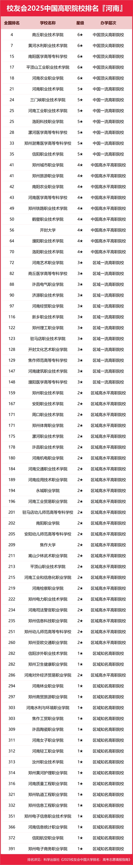 校友會2025河南省高職院校排名,商丘職業技術學院第一,黃河水利職業技術學院第二