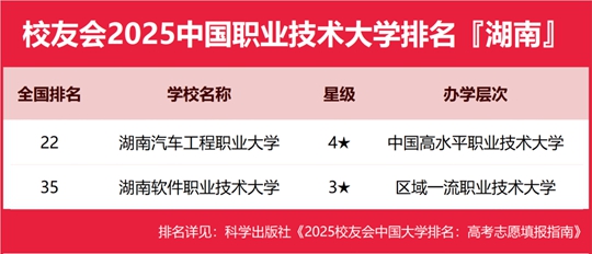 校友會2025湖南省職業技術大學排名,湖南汽車工程職業大學第一,湖南軟件職業技術大學第二