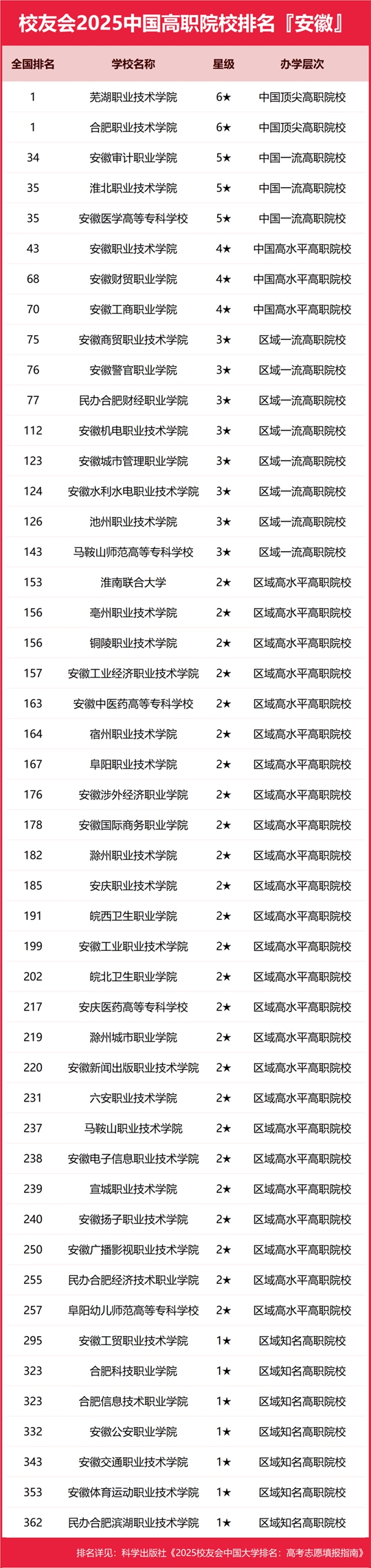 2025安徽省高職院校排名,蕪湖職業技術學院、合肥職業技術學院并列第一