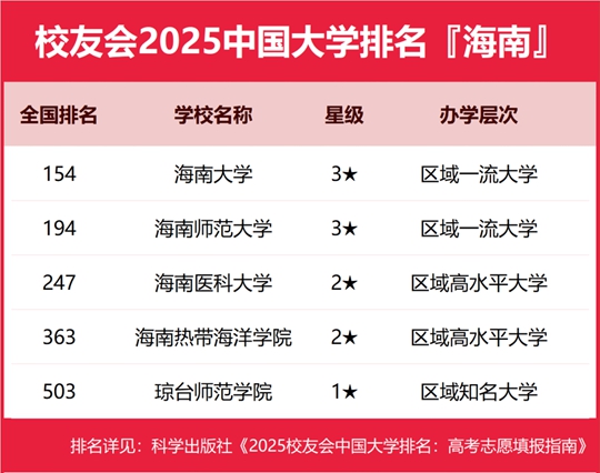 校友會2025海南省大學排名,海南大學、三亞學院、海南科技職業大學第一 |