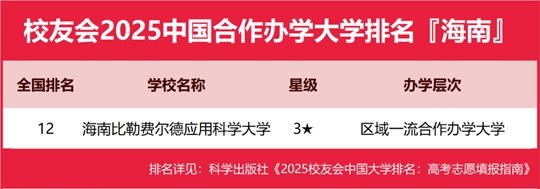 校友會2025海南省合作辦學大學排名,海南比勒費爾德應用科學大學第一