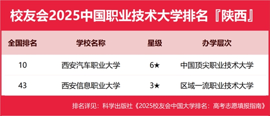 校友會2025陜西省職業技術大學排名,西安汽車職業大學第一,西安信息職業大學第二