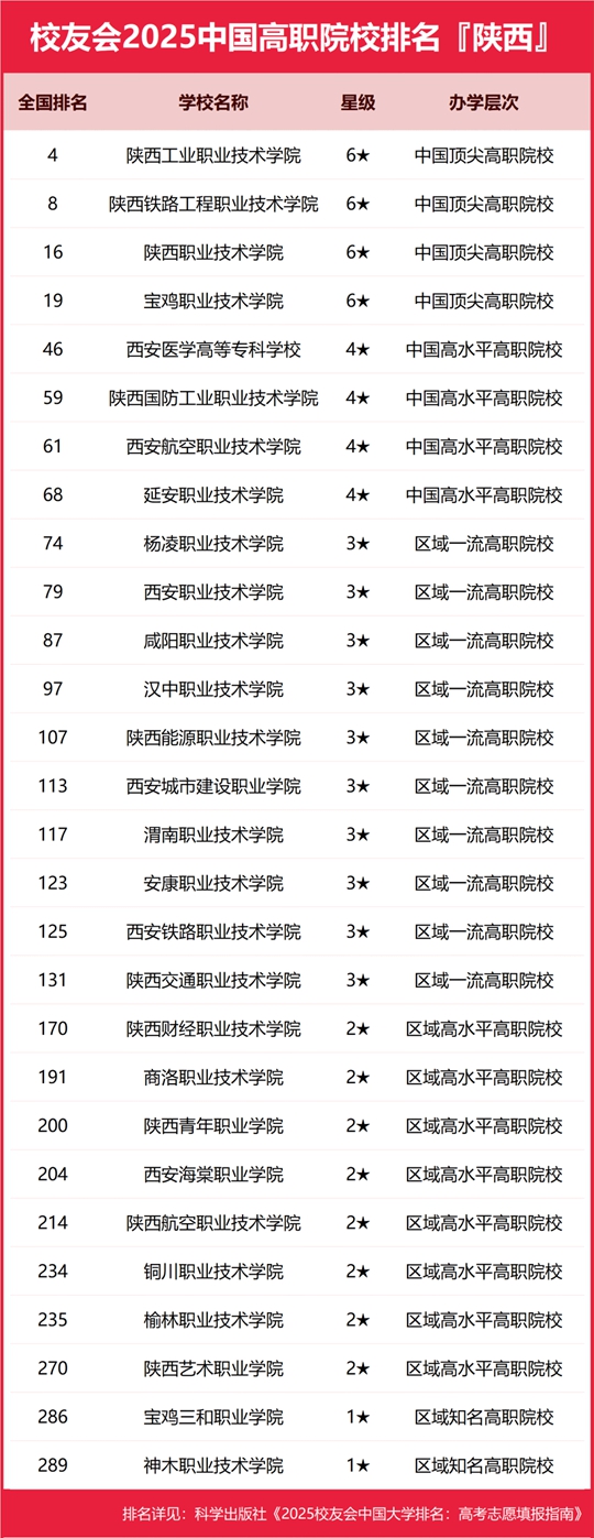 校友會2025陜西省高職院校排名,陜西工業職業技術學院第一,陜西職業技術學院第三
