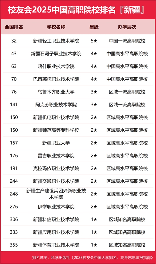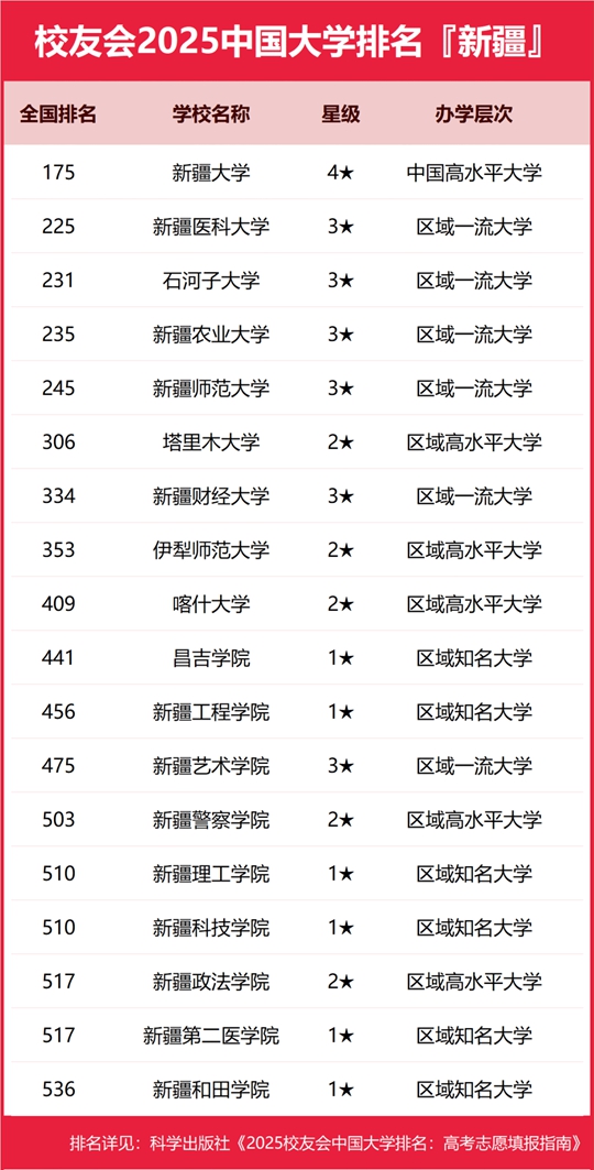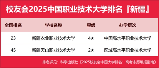 校友會2025新疆維吾爾自治區大學排名,新疆大學、新疆輕工職業技術學院、新疆農業職業技術大學第一 |